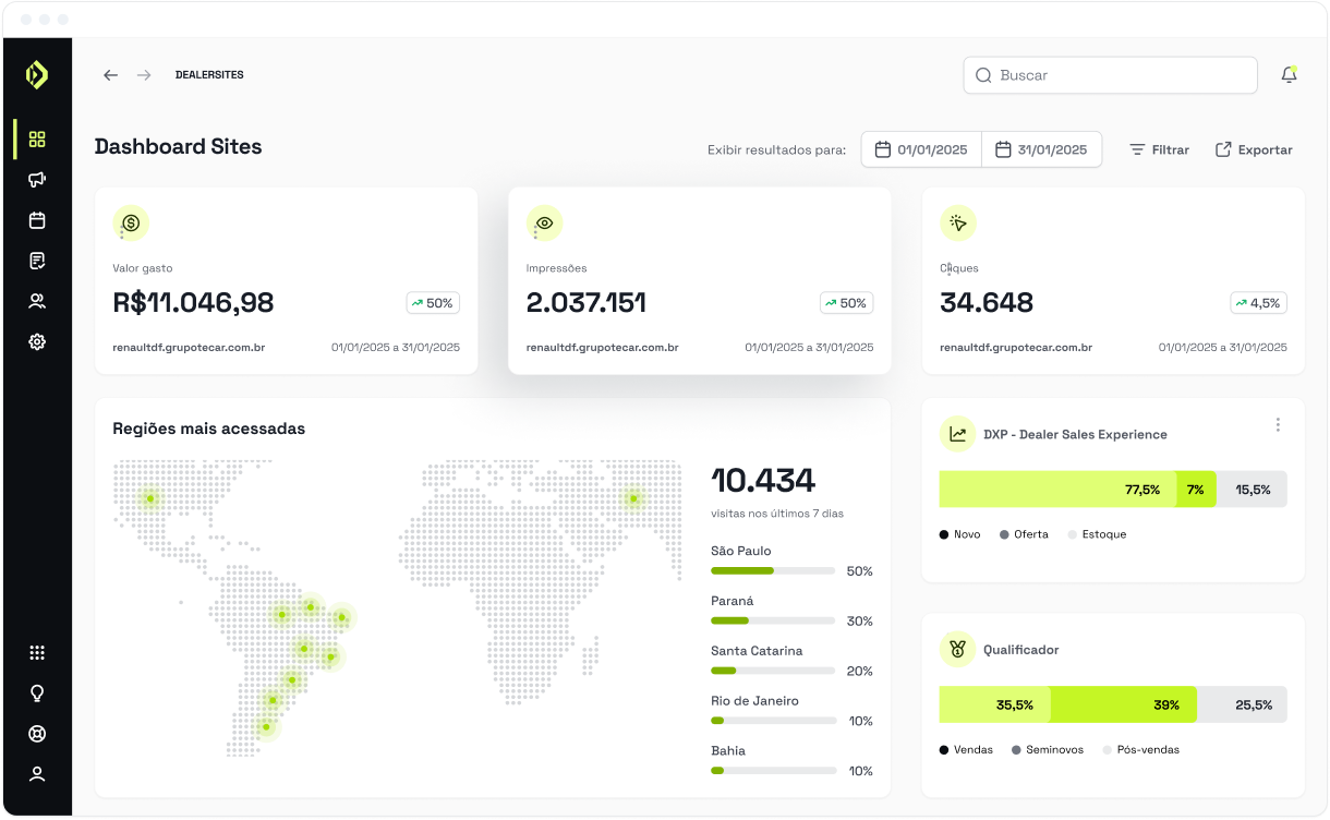 Maximize o potencial do seu ponto de venda com a autonomia que só a principal plataforma de sites automotivos do Brasil pode proporcionar.
